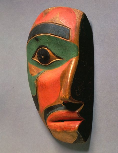 Die Maske stellt einen Rivalen des Gastgebers dar, der bei einem Potlatch sehr nahe am Feuer platziert wurde. Wenn der Gastgeber wertvolles Fischöl ins Feuer schüttete (eine Verschwendung als Zeichen des Wohlstandes), hatte der hochrangige Gast zwei Möglichkeiten: Vom Feuer wegzurücken und dabei im symbolischen Sinne sein Gesicht zu verlieren, oder aus Stolz am Feuer sitzen zu bleiben und sich das Gesicht zu verbrennen.